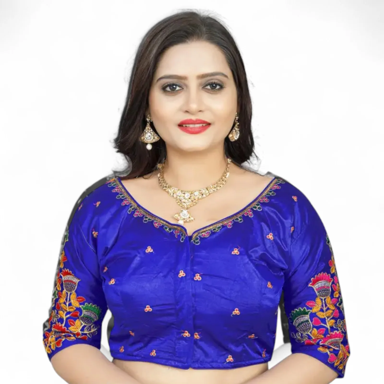 Add a regal charm to your ethnic ensemble with our blue embroidered saree blouse – a perfect blend of elegance and traditional artistry. This blouse is ideal for weddings, cultural functions, festivals, and special occasions.
